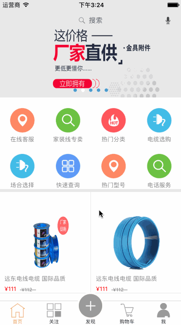 再次,在自定义的UITabBarController中,连接各个模块,在这个过程中UITabBarController起到了应用的连接中枢的作用,为了炫技,哥做了个中间凸起效果,主要的TabBarController代码如下: