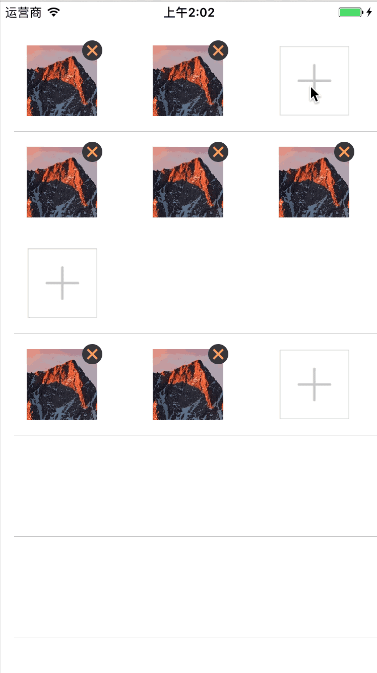 在有社交分享平台属性的app中,我们经常看见类似有tableview中多图展示。不管是发布的表单界面中,还是社交动态的时间线的界面中,都需要根据图片数量动态变化界面。最近刚好写了一个这样的界面,花了点时间写了个Demo总结一下,希望可以帮助有需要的人。实现Demo效果如下图。