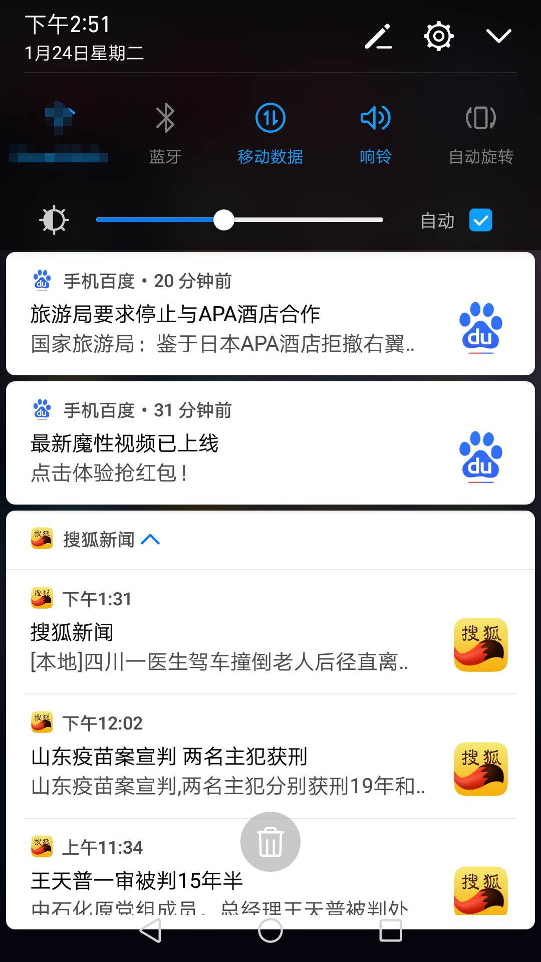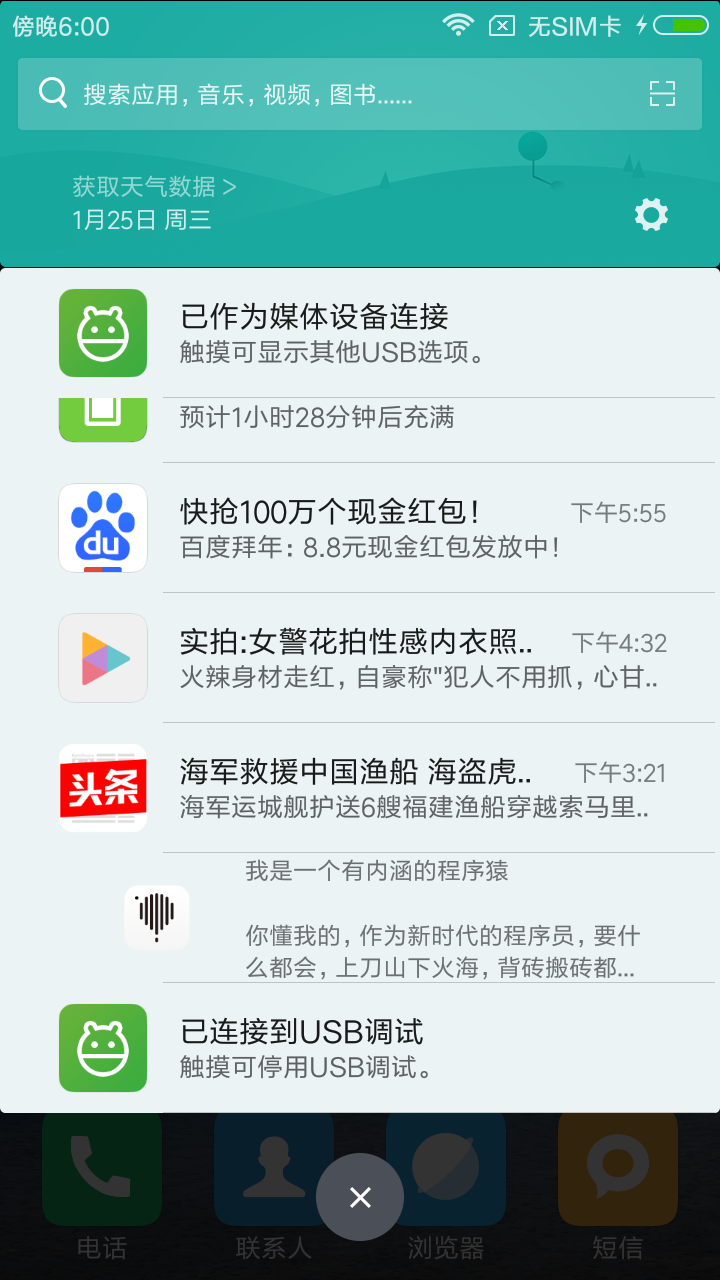 华为P9上的通知栏截图