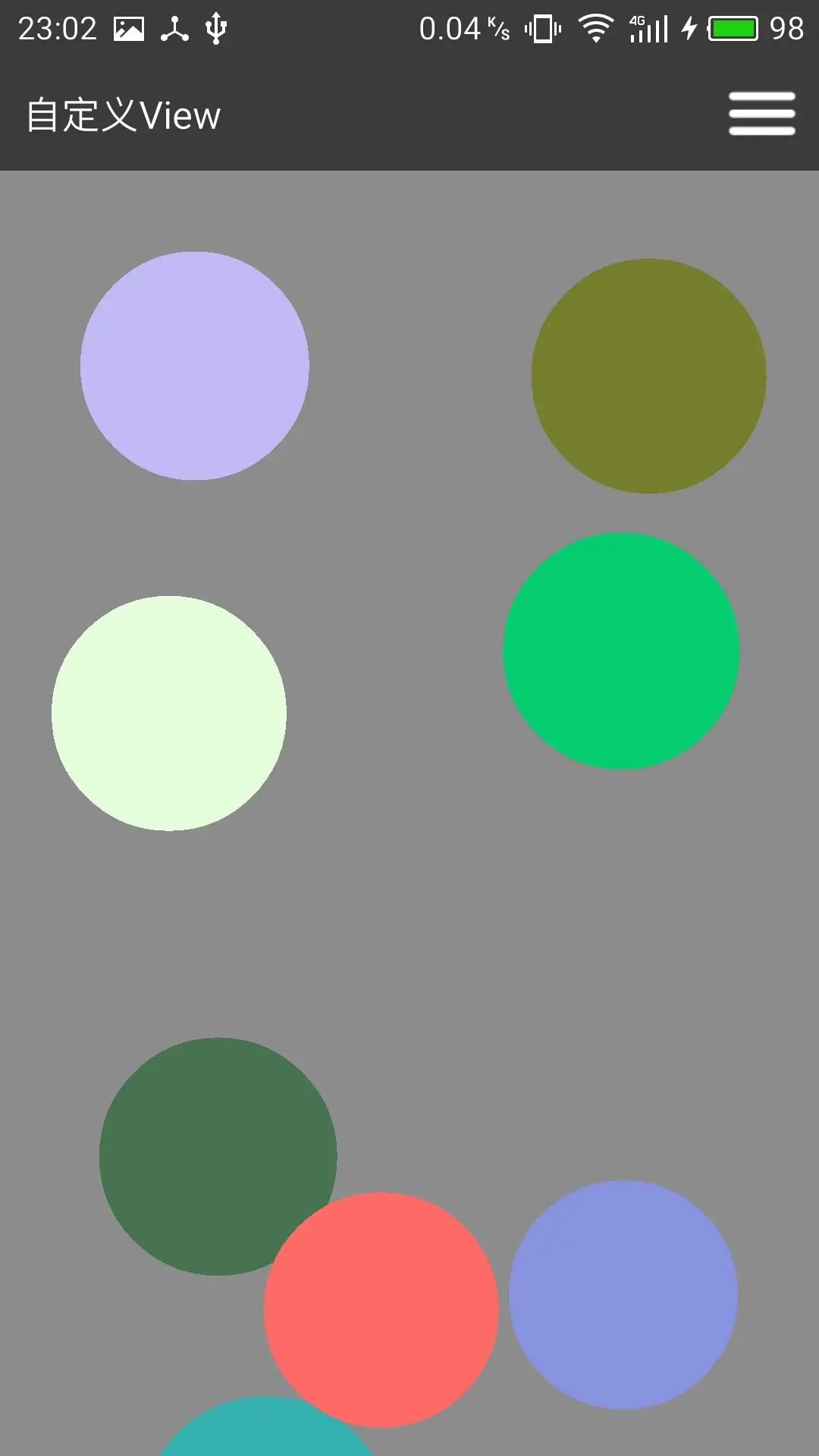 公司放假时间是在23号,也就明天了,大四实习到现在,一直很忙,这段时间也是我在编程层面上学到了比较多东西的阶段,上面的自定义View是Android的,完成它们是在实习上班期间挤出时间做的,最初的初衷是想把第四个碰撞球的效果加入到毕设里面,现在总算是实现了,过程遇到很多问题,球体的碰撞处理比想象中麻烦很多,前三个比较简单,也是微信,QQ的下表情原理吧,我猜应该是。。。