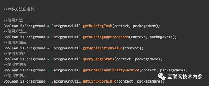 传入Context参数与想要判断是否位于前台的App的包名,会返回ture或者false表示App是否位于前台