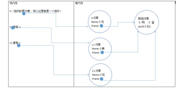通过上面的例子,可以发现实现深度的复制,o对象和c1对象,修改属性值,已经没有了影响,它们现在的内存关系图是