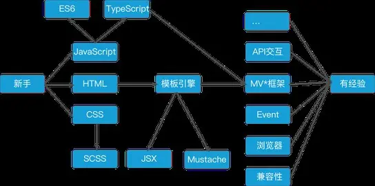 谈起路线规则这事,就会联想起算法里的路径问题。想了想,发觉“如何教人入门前端”与“选择合适的路径”颇为相似的,要实现这样的规划蛮难的。先上张图,加深一下印象: