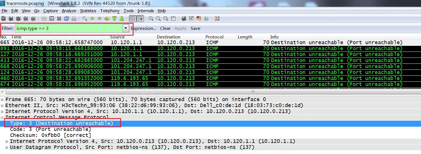 这是一种最简单的过滤条件了。实际上设置filter的语句有很多,如果想要过滤ICMP中type为3(目的地不可到达)的数据报,但又不知道filter应该怎么写,那应该怎么办呢?