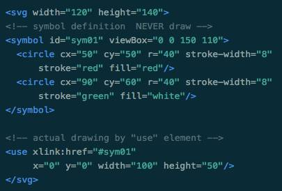 <symbol>element is used to define graphical template objects which can be instantiated by a<use>element.