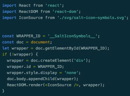 随着 webpack ( webpack.github.io/ ) 打包的成熟,各种 loader,我们将那一坨 symbol 模板直接打包成一个 salt-icon-source.js 文件,在这个文件中将其 append 到 body 上。