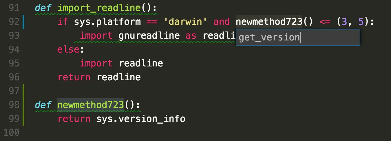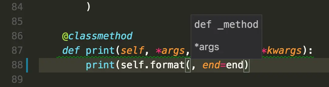 VS Code 中的自動完成主要是用 icon 來分辨 class、variable 或是 function,識別度來說比起 Sublime 好上許多。而如果你是 Visual Studio 使用者的話,一定看起來也覺得特別熟悉 (IntelliSense)。