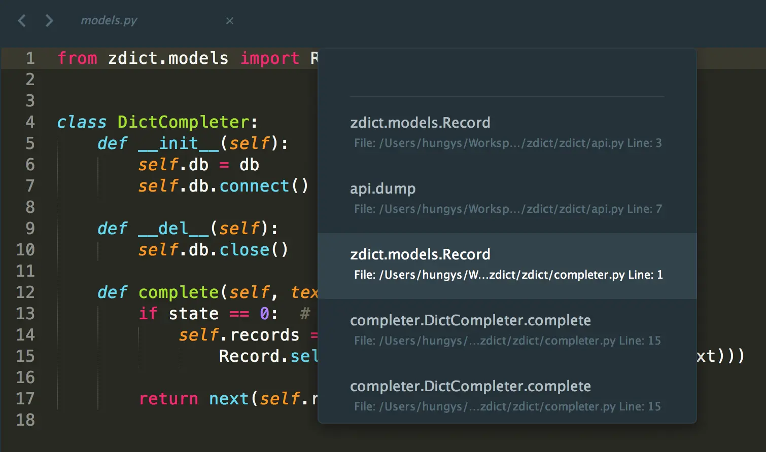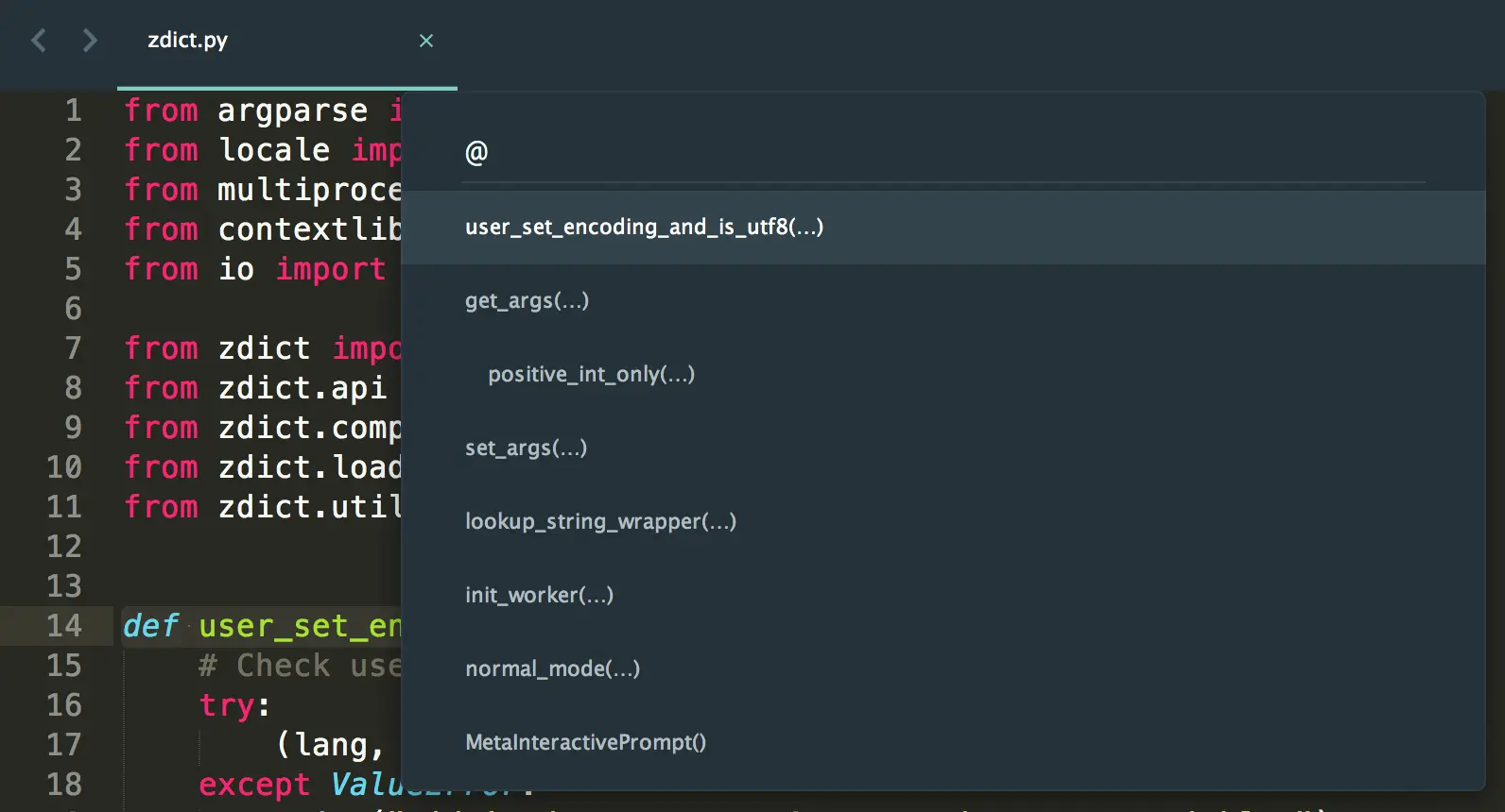 - Go To File/Symbol/Line