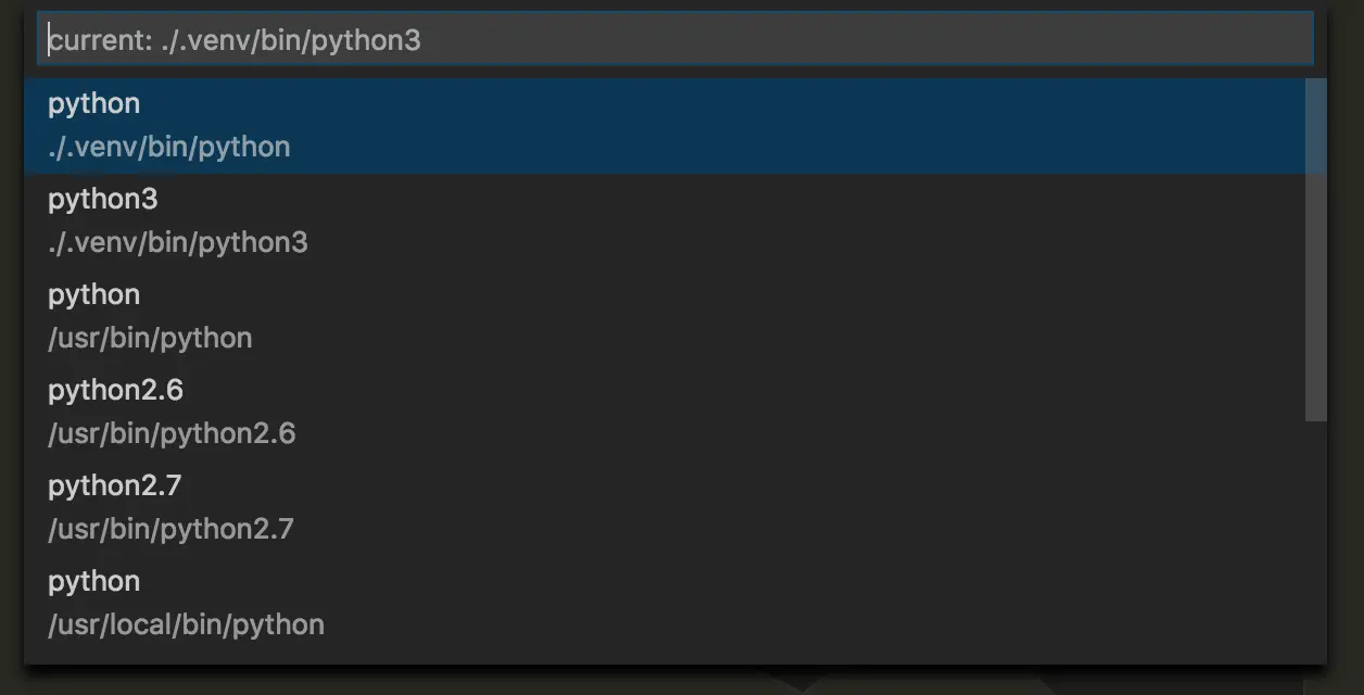 code指令開啟 VS Code。 - Command Palette 中的 [Python: Select Workspace Interpreter] (如下圖)也可以指定用哪個版本的 Python。這個設定會被存在
