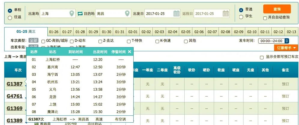 17年的春节即将临近的时候,跟大多数人一样都需要抢一下回家的票,庆幸我买到了回家的票,因为目的地离家还有一段距离,所以需要知道到达的时间,然后安排下中转回家的行程。就想到如果再terminal中直接可以查就好了,接着就是google了一下,果然网上有很多类似的东西,但是查询火车时刻表的功能好像没有,那就自己写吧。