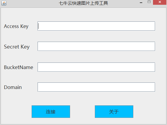 由于没有找到七牛云连接时是否会返回错误信息,所以连接时并不会提示是否连接成功,会直接进入功能界面,这点有些坑爹,如果有哪位童鞋知道怎么获取连接是否成功的方式请分享下谢谢(现在设想的是先上传一个小测试图片看能否上传成功来判断是否连接成功)1.Access Key And Secret Key: