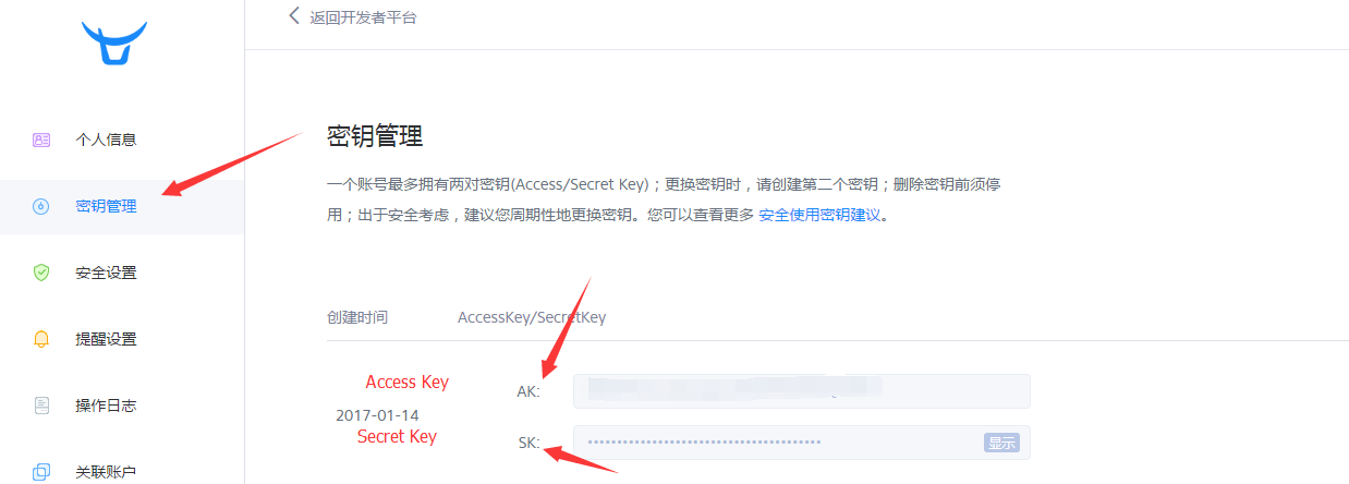 在七牛云的个人中心-->密匙管理中可以找到