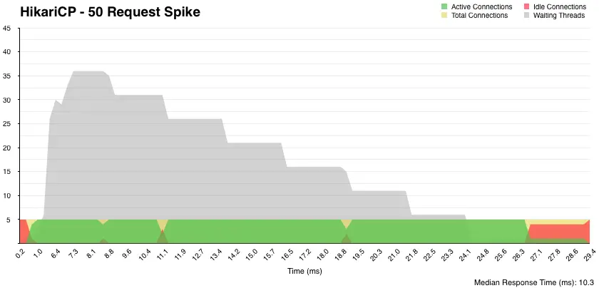 Anaylsis of HikariCP v2.6, in comparison to other pools, in relation to a unique "spike
