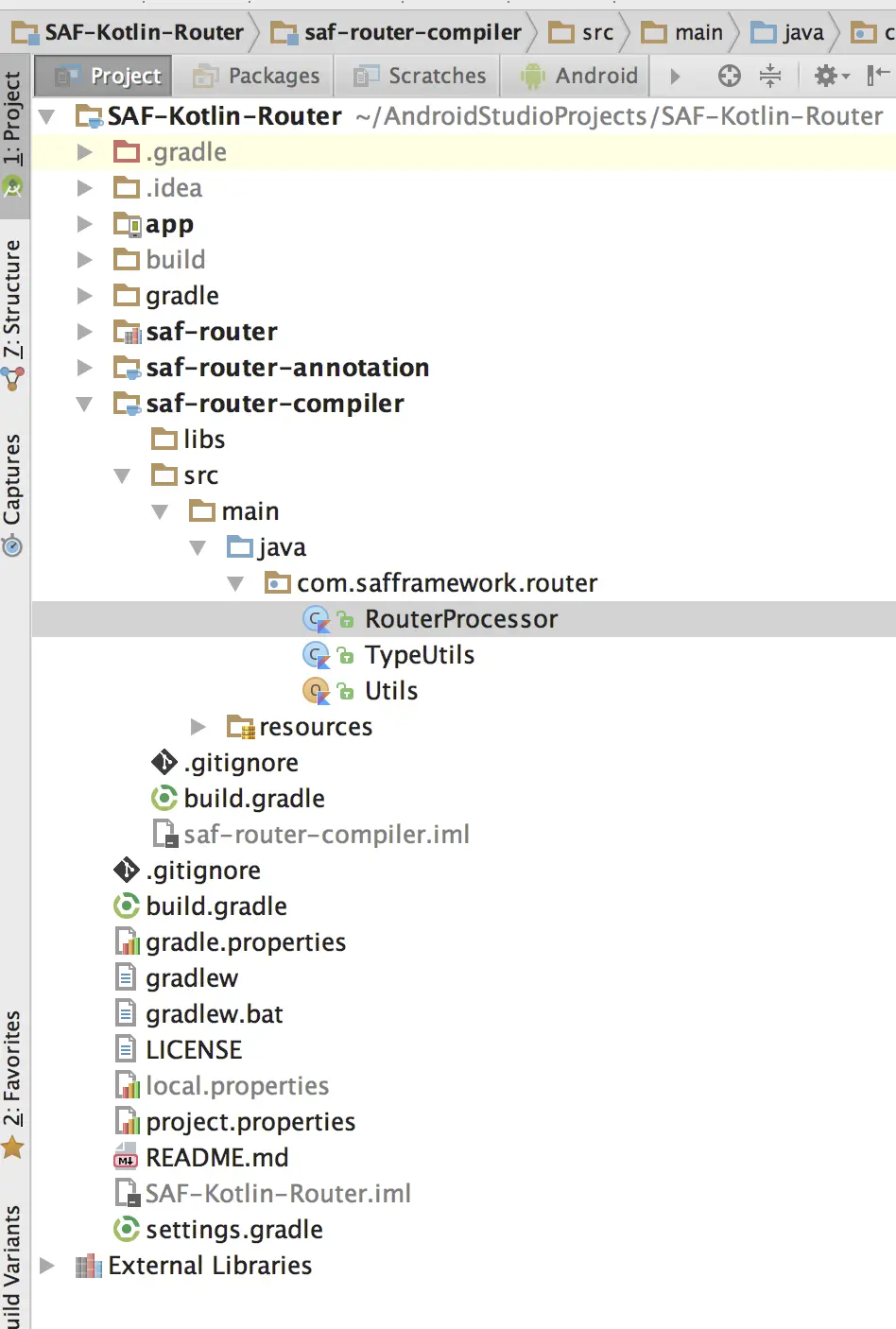这个框架的saf-router-compiler模块是用kotlin编写的。