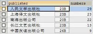 SELECT publisher,COUNT(*) AS numbers FROM doubanbook GROUP BY publisher ORDER BY numbers DESC LIMIT 0,5;