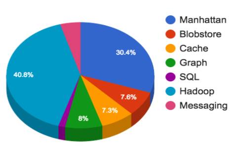 每天发推数以亿计。 它们被处理,存储,缓存,服务和分析。 有了这么多的内容,我们需要一个后续的基础设施。 存储和消息传递占Twitter基础设施足迹的45%。