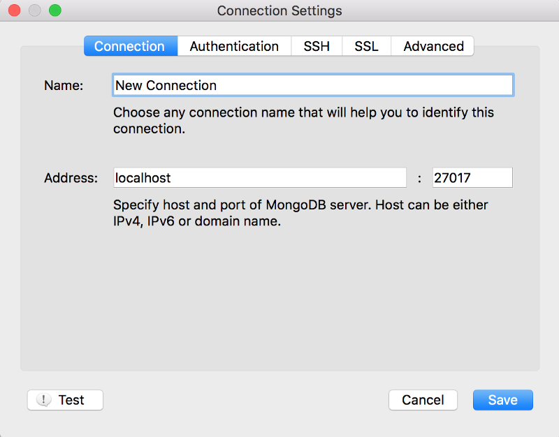 如果有帳密或是 SSL key 就直接在這畫面的分頁設定即可,左下角的 test 很方便,直接按就能知道會不會連上,不用等到 save 之後連線失敗,那樣還要再回到這個畫面,很麻煩。