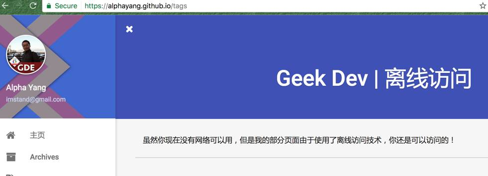 现在很流行基于 GitHub page 和 markdown 的静态 blog,非常适合技术的思维和习惯,针对不同的语言都有一些优秀的静态 blog 系统出现,如 Jekyll/Ruby,Pelican/Python,Hexo/NodeJs,由于静态内容的特性非常适合做缓存来加速页面的访问,就利用 Service worker 来实现加速,结果是除了 PageSpeed,CDN 这些常见的服务器和网络加速之外,通过客户端实现了更好的访问体验。