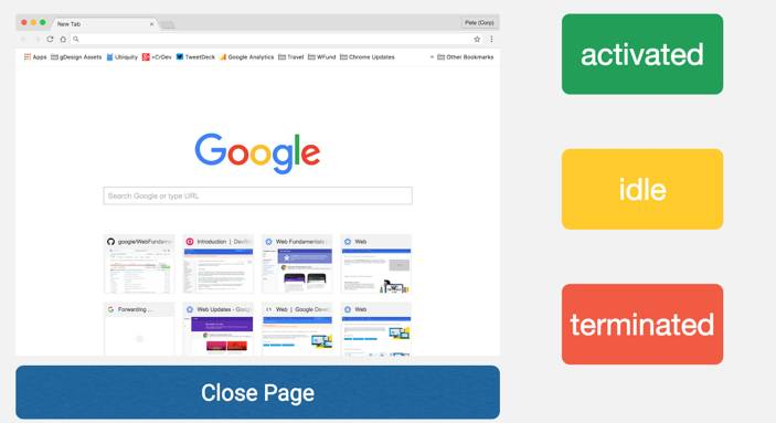 当 Service worker 处理完所有的事件后,进入 idle 状态,最终进入 terminated 状态资源被释放,当有新的事件发生时再度被调用。