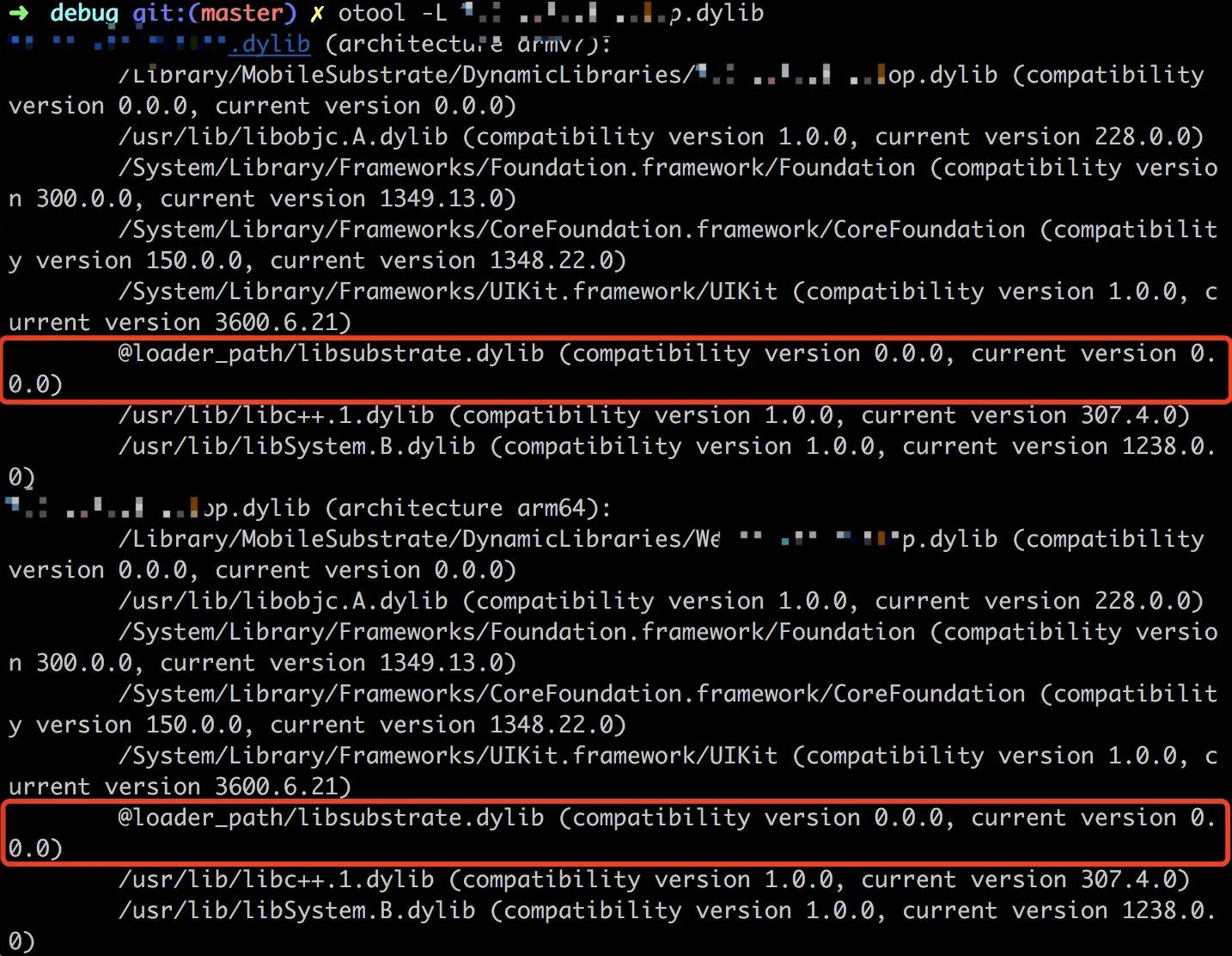 install_name_tool -change/usr/lib/libsubstrate.dylib @loader_path/libsubstrate.dylib xxx.dylib