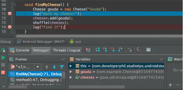 描述:随时启动调试程序,即使你没有以调试模式启动你的应用。这是一个很方便的操作,因为你不必为了调试程序而以调试模式重新部署你的应用。当别人正在测试应用,突然遇到一个bug而将设备交给你时,你也可以很快地进入调试模式。