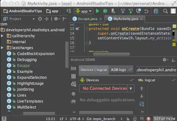 描述: 这个操作读取一份堆栈追踪信息,并且使它像logcat中那样可以点击。当你从bug报告中或者终端复制了一份堆栈追踪,使用该操作可以很方便地调试。