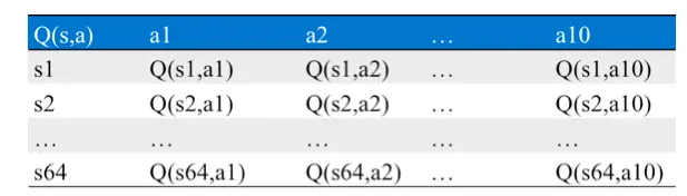 具体地,当用户进行了搜索后,根据用户的状态s,和Q表(下图)进行一个epsilon-greedy的投放,选择一个动作a(上文中的价格指数t),执行这个a的排序结果展示给用户,并记录下这次的状态s与动作a,以及用户对这次搜索结果的反馈r,从用户的点击与否的反馈,再对Q表进行更新。
