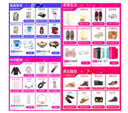 双11主会场是一个很复杂的推荐场景。从推荐的业务形式上看,双11主会场分为三层:分别是楼层、坑位以及具体素材图的推荐。2016年的双11主会场在整体的组织形式上与去年的双11主会场类似,但具体业务的构成及组织有较大的不同。首先,可推荐的楼层多于十层,我们需从中挑选数层进行展示,并有可能根据时间段和业务的需求进行调整。因此,展现形式的多变对模型的日志特征学习造成了一定的干扰。其次,坑位的构成分为三种会场入口:第一行是行业会场,第二行对应店铺会场,第三行对应是标签会场。最后,在楼层以及坑位都确定之后,我们需要每个的坑位入口上选择具体的素材。2016年双11主会场的素材有两种不同的展现形式,分别是双素材图以及单素材图。双素材图模式能提升用户的点击欲望,增强视觉感官冲击力,但也会对用户的真实点击行为数据造成一定程度的干扰或噪声,甚至对排序的模型产生比较大的偏置。
