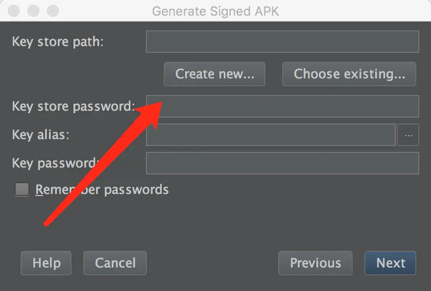 在这里一定要记住自己设置的密码,因为以后每次打包的时候都需要输入这个密码,其中Alias也需要记住。