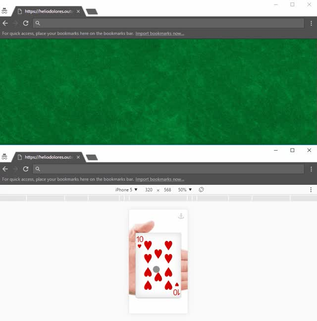 为了让纸牌像是从手机底部落到桌子上,我在视口外创建了一个元素,之后设置 translateY 的变换让它看起来像是滑入窗口中一样。