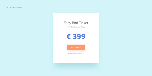 我们下面以一个简单的例子来阐述基于组件的设计流程。我们产品的某个重要服务就是进行门票售卖,因此我们需要展示三种不同风格的门票卡片、每个卡片的呈现方式是一致的,都会包含按钮和一些文字。换言之,这里的门票卡片就应该被设计为组件,即所谓的 Ticket-Component.
