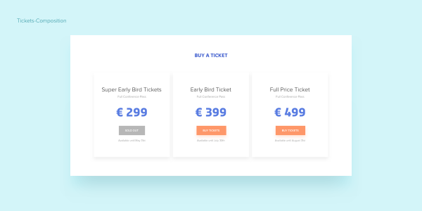 然后,我们需要将三种卡片编为一组同时展示在组件上,此时即就是设计出了所谓的复合,Tickets-Composition,定义了每个卡片之间的间距以及整个的标题。