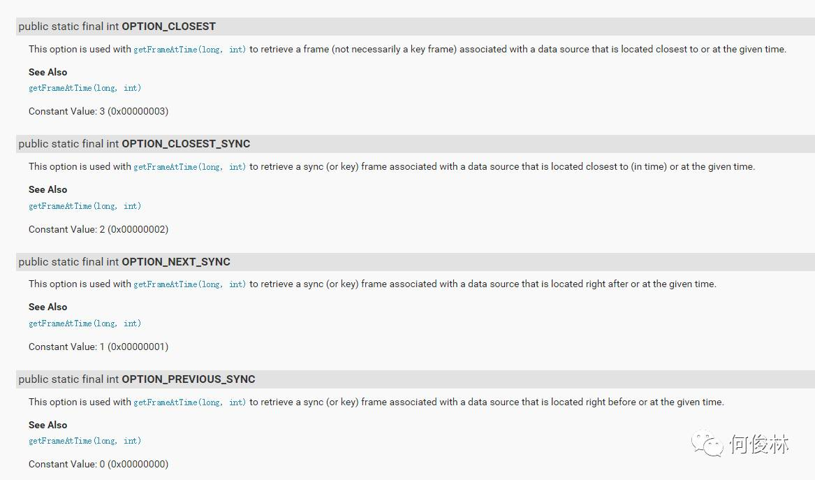 同时博主又搜集了一些资料,并仔细查看了getFrameAtTime方法的详细参数