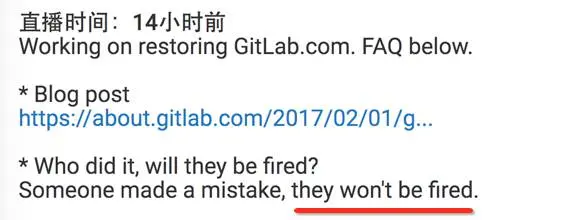 在直播过程中,Gitlab 工作人员明确表示不会开除这位员工。