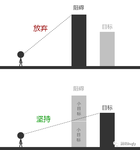 然后不定期的行动去锻炼(想到目标的时候就督促自己动一下,所谓的目标感),每每锻炼完后习惯性的问自己 “应该有变化了吧?” “看看腹肌有了没?”(不断的对比目标),就这样坚持了一个星期乃至一个月。困难来了,挫折来了,你发现,哪有什么腹肌,变化很微小。锻炼时痛苦煎熬的回忆开始在你脑中回荡,你不知道还要熬多久,此时的你很受挫,严重打击你的积极性和成就感。顿悟,世上无难事,只要肯放弃。