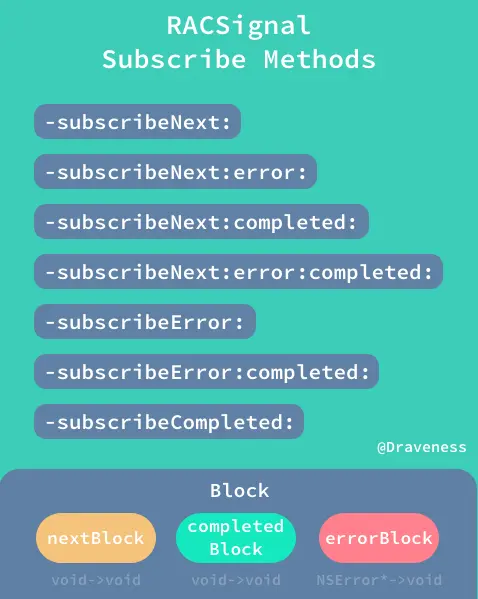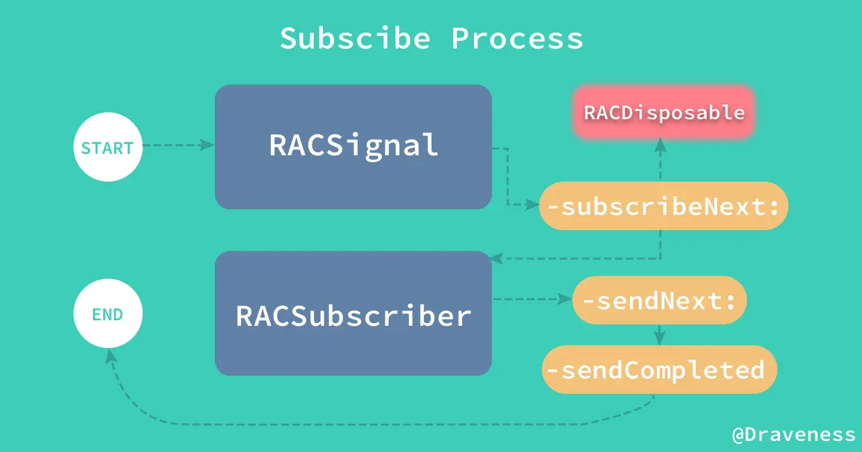 }];在每个订阅创建以及所有的值发送之后,订阅就会被就地销毁,调用 disposeBlock,并从 RACCompoundDisposable 实例中移除: