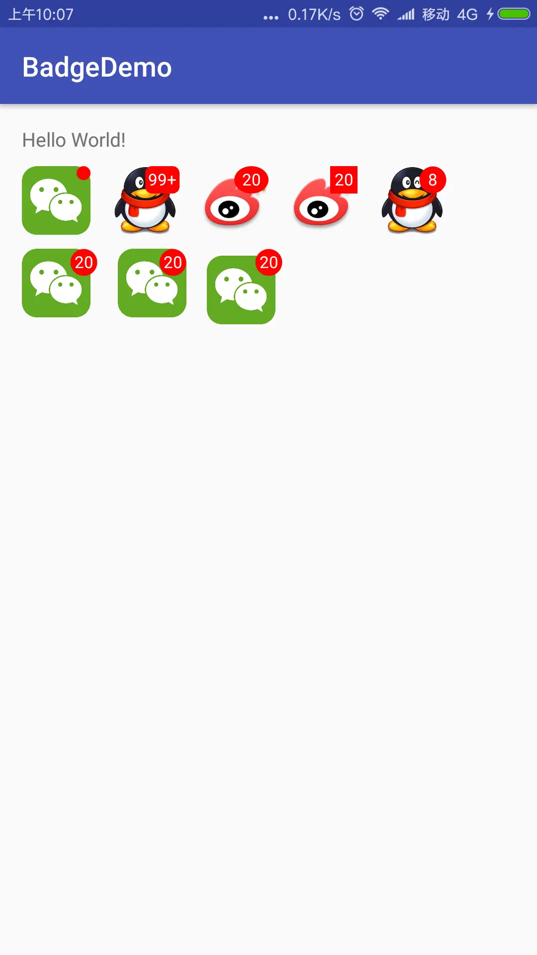 其实在开发众多APP中,可能我们都需要用到这种BadgeView控件,以前可能是在需要的地方加个图标上去,这样每次有这样的需求的时候就需要在布局里写个控件上去,很麻烦。网上看了其他库也是在封装成一个父布局控件,在XML里面还需要写一次。后面想能不能不用绑定布局直接以一种最简单的办法加上这个徽章。于是我的BadgeView诞生了。