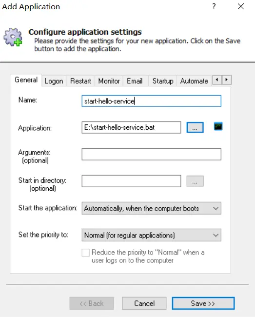 Windows下比较简单,我们可以直接使用这款软件:AlwaysUp。如下图所示,简单、暴力、好用。
