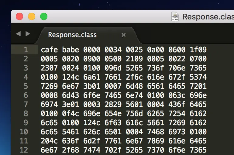 随便找到一个class文件,用Sublime Text打开是这样的: