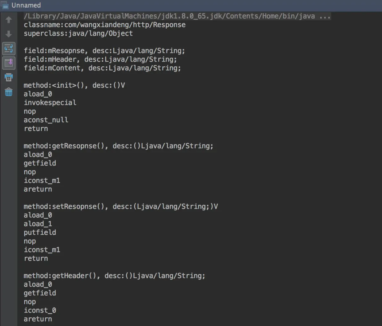 System.out.print("classname:" + classFile.className + "\n");字节码指令