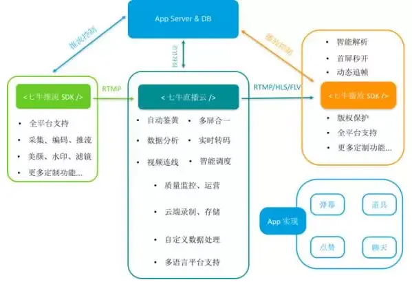 1.业务模型七牛直播云是一个完整的解决方案,它包括推流端、网络和播放端三个部分。