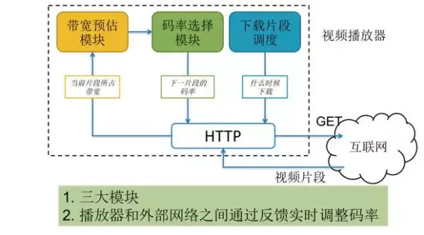 通过带宽预估模块、码率选择模块、下载片段调度等三大模块可以很好的控制视频片断的拉取,并通过实时反馈进行码率调整。