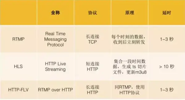 讨论了网络后,服务端还有一块重要内容,即传输协议。目前常用的三个传输协议包括:RTMP、HLS、HTTP-FLV。RTMP 延迟能控制在 1 到 3 秒;HLS 延迟可能会超过 10 秒,但是目前我们做到将其延迟控制在 6 到 7 秒;HTTP-FLV,顾名思义,是基于 HTTP 协议,只不过是基于长连接的 HTTP,延迟可以控制在 1 到 3 秒。
