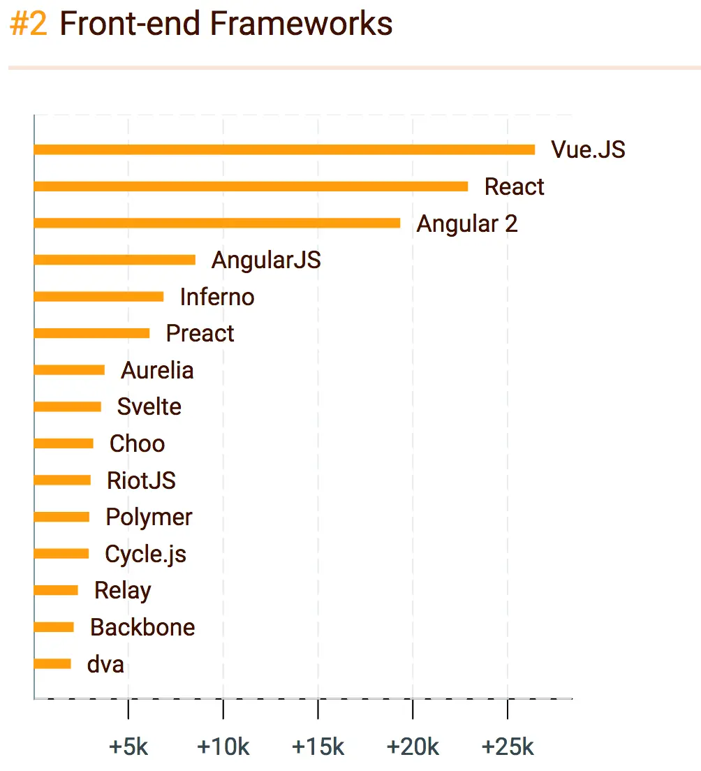 我们已经提到了总体排名第一的Vue.JS,让我们看看其他竞争者。