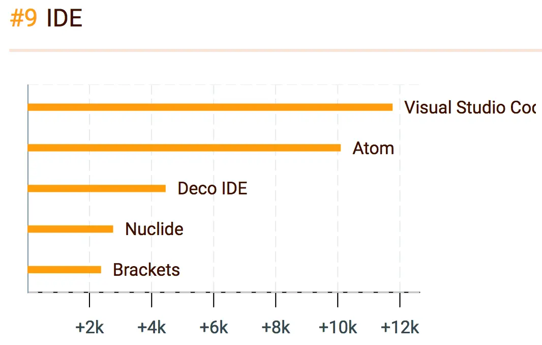 在我们的结果中,Microsoft凭借Visual Studio Code遥遥领先。