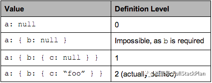 嵌套数据类型的特点是有些field(optional field 和 repeated field)可以是空的,也就是没有定义。如果一个field是定义的,那么它的所有的父节点都是被定义的。从根节点开始遍历,当某一个field的路径上的节点开始是空的时候我们记录下当前的深度作为这个field的Definition Level。如果一个field的definition Level等于这个field的最大definition Level就说明这个field是有数据的。对于required类型的field必须是有定义的,所以这个Definition Level是不需要的。在关系型数据中,optional类型的field被编码成0表示空和1表示非空(或者反之)。
