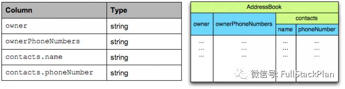 上面这个schema的数据存储实际上有四个column,如下图所示: