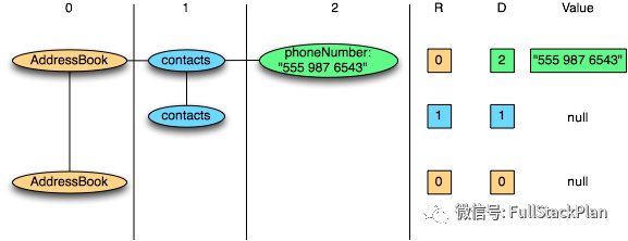 D=2 说明Definition Level=Max Definition Level,那么这个Value就是contacts.phoneNumber这一列的值,赋值操作contacts.phoneNumber=”555 987 6543”。