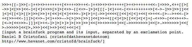 上图是一个烧脑语言编译器, 由Daniel B Cristofani(不是我那个同学)使用烧脑语言编写的。