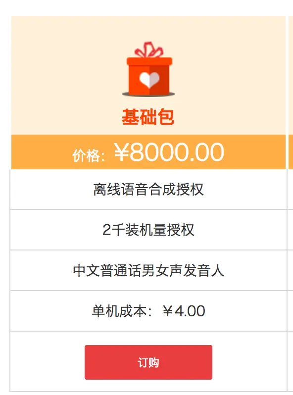 语音播报这个功能,正常场景中,无论是有网还是无网情况,都能使用,也就是说要求可以离线使用,但是在第三中,讯飞的离线语音合成收费,而且,还不便宜,有兴趣的可以去看下。这里放个基础包的价格,大家感受下: